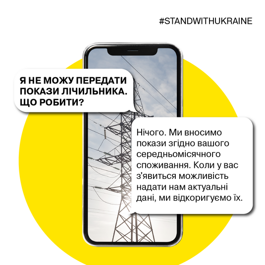 Представники компанії розповіли користувачам, як передати покази лічильника під час війни та до кого звертатися, якщо в будинку зникло світло