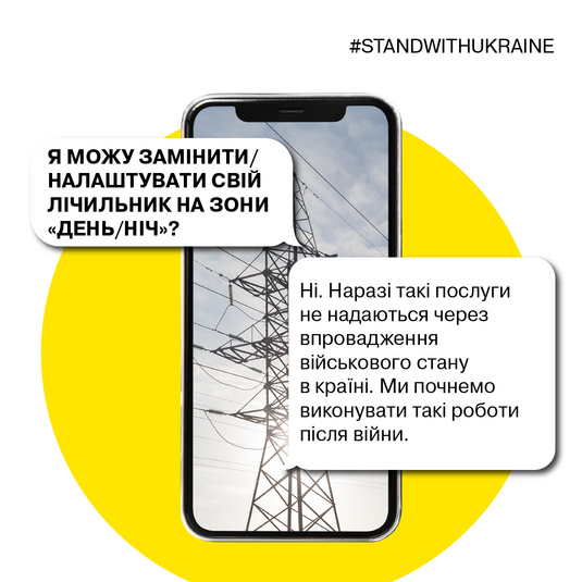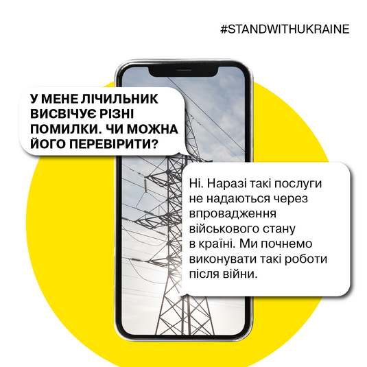 А от, якщо лічильник висвічує різні помилки, то співробітники компанії наразі не зможуть допомогти споживачам. Адже зараз такі послуги не надаються через впровадження воєнного стану в країні. Через активні бойові дії по всій країні також тимчасово не можна замінити/налаштувати свій лічильник на зони «День/Ніч».