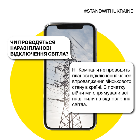 Представники «ДТЕК Київські електромережі» також попередили своїх споживачів про те, що на час війни планові відключення світла не виконуються.