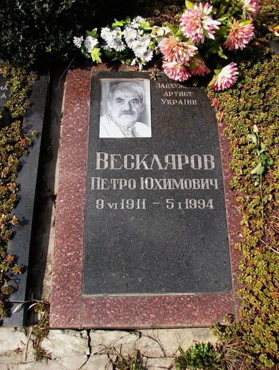 «Так сталося, що у складі трупи похідного театру Петро Вескляров потрапив в оточення, а згодом опинився у німецькому фільтраційному таборі. Саме там Петро Юхимович змінив прізвище на Вескляров. Хоча батьків актора нацисти розстріляли, йому єврейське походження вдалося приховати, а коли трапилася нагода – й втекти, скориставшись плутаниною. Правдами і не-правдами біглому пощастило дістатися до окупованого німцями Києва, де той влаштувався на роботу на залізниці та знову зорганізував… Не, підпільний осередок, а драматичний гурток: у справжнього художника є не менш грізна зброя. Коли всі прості радянські люди загукали: «Ура! Перемога!», – випробування у житті майбутнього діда Панаса були ще попереду», – переповів цікаві біографічні моменти культуролог.
