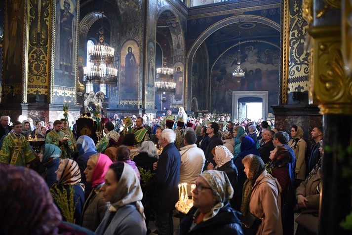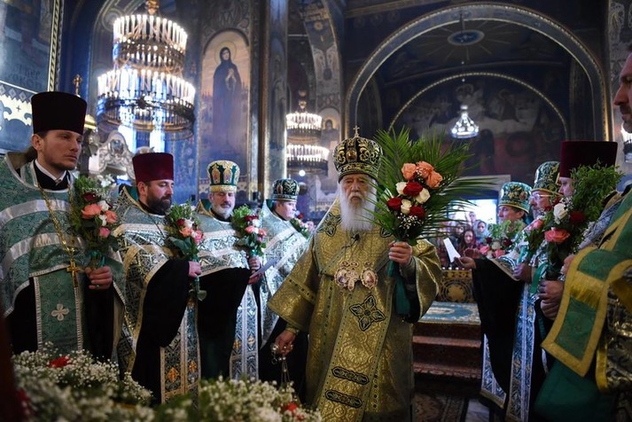 Після читання Євангелія Філарет освятив вербу, яку віруючі принесли до храму, повідомляється на сторінці Патріарха у Facebook.