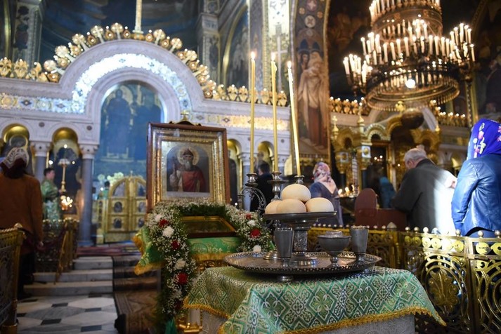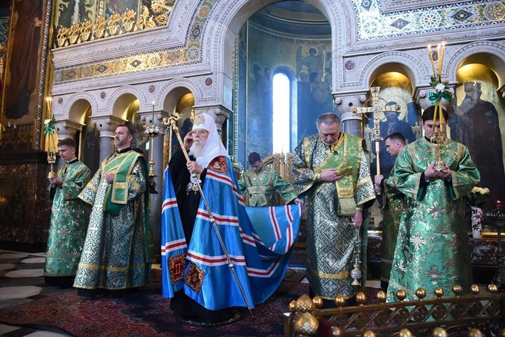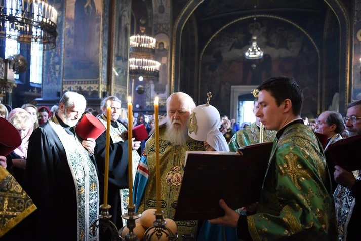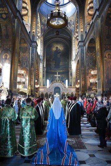 Святійший Патріарх Філарет провів Всенічне бдіння у Володимирському кафедральному соборі в Києві напередодні Вербної неділі, свята Входу Господнього у Єрусалим.