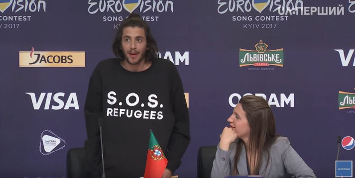 Один із фіналістів «Євробачення-2017» Сальвадор Собрал, котрий представляє Португалію, під час першої прес-конференції у новому статусі закликав захищати права біженців.