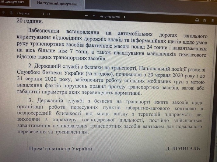 Також доручено встановити мобільні пункти габаритно-вагового контролю біля підприємств, на яких постійно здійснюється завантаження фур для подальшого перевезення вантажів.