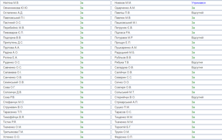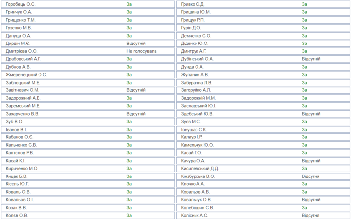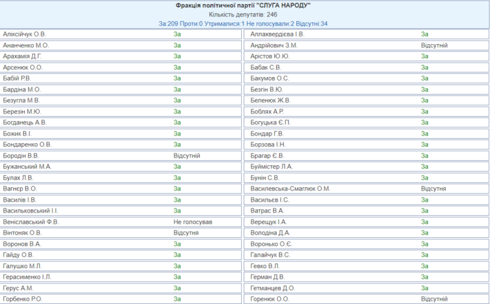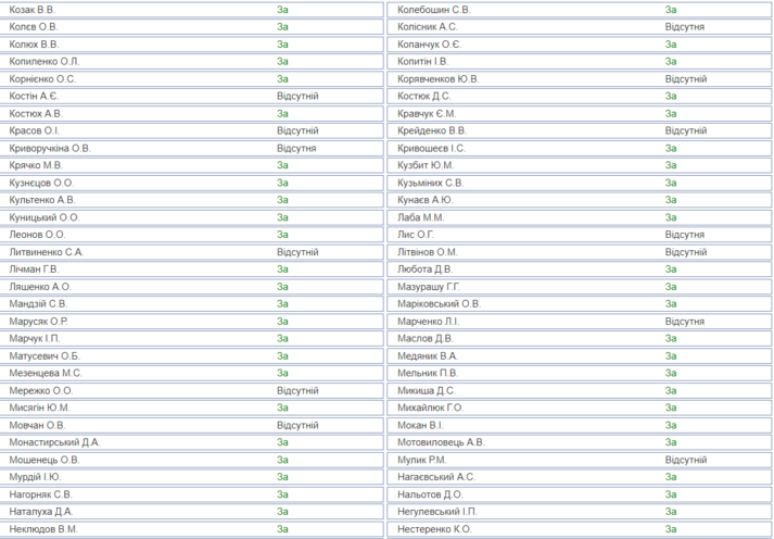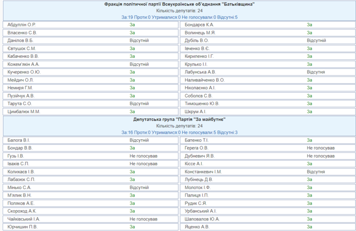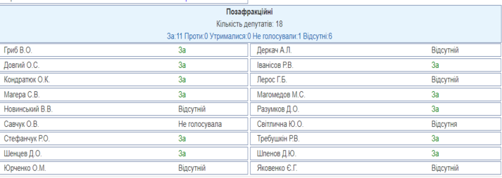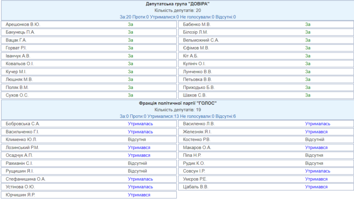 Проти голосувала фракція «Європейська солідарність». Депутати від «Голосу» утрималися.