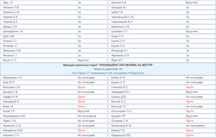 Також проти законопроєкту проголосували 17 народних депутатів від «Опозиційного блоку – За життя».