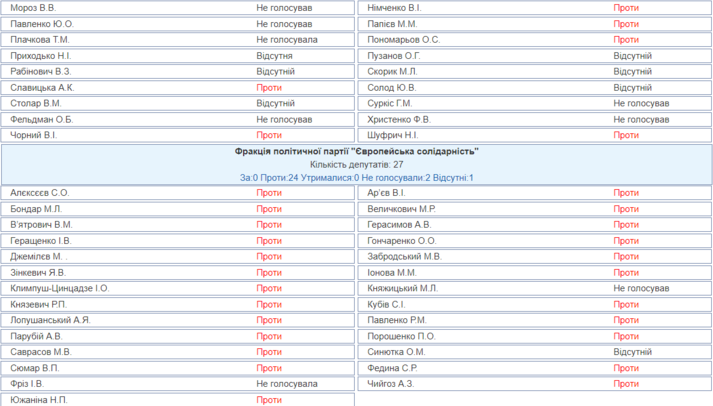 Проти голосувала фракція «Європейська солідарність», депутати від «Голосу» утрималися