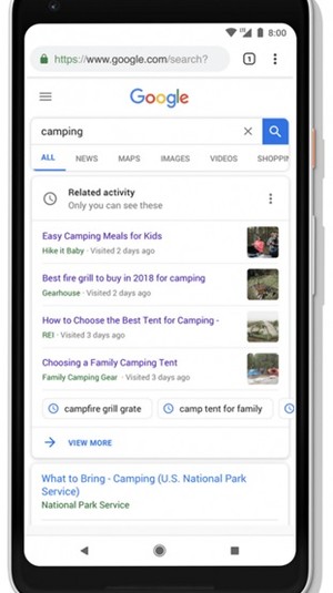 Картки активності представлятимуть функцію, завдяки якій користувач зможе переглядати попередні кроки, якщо введе пошуковий запит з минулого.