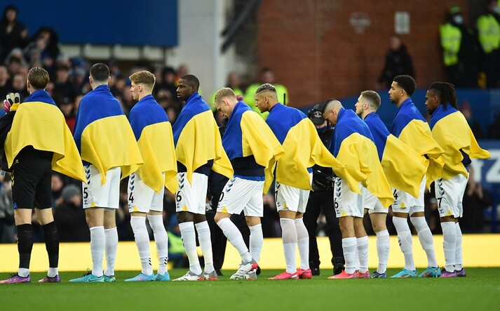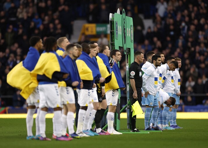 Гравці Евертона вийшли на поле з українськими прапорами, футболісти Манчестер Сіті – у футболках з українським прапором та написом «Ні війні».