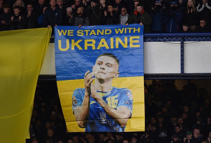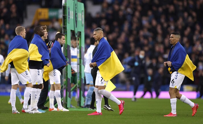 При цьому на екрані ліверпульської арени «Гудісон Парк» було зображено український прапор зі словами: «Зупиніть Путіна. Зупиніть війну».