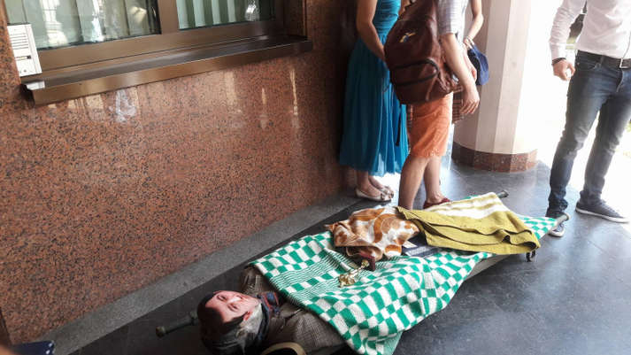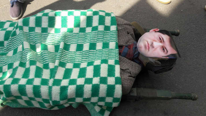 «Образ Насірова взято з життя, коли він, прикинувшись хворим, закутався в ковдру і поїхав у лікарню. Це цинізм. За нього внесли в якості застави величезні гроші, і він, будучи частиною корупційної схеми, вийшов на свободу і навіть повернувся на роботу. Це теж цинізм. Вони сміються над нами, а ми - над ними», - пояснив суть акції учасник по імені Іраклій.