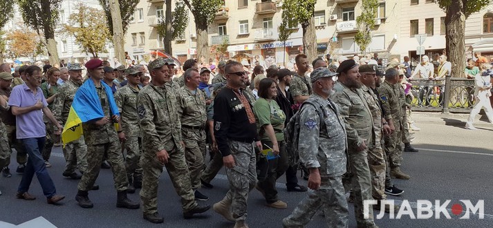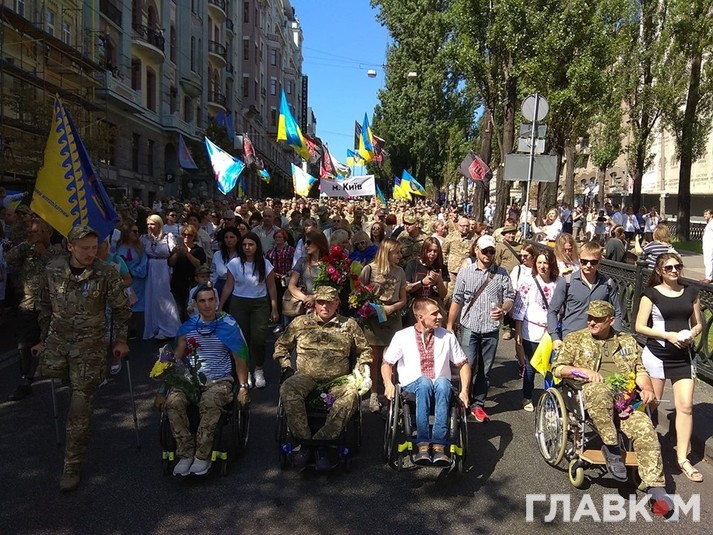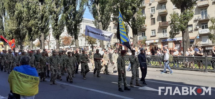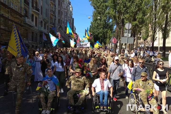 Очолюють ходу близькі і родичі загиблих на Донбасі, потім йдуть ветерани, представники ветеранських організацій та військовослужбовці. Організатори оцінюють кількість учасників у 10 тис. людей.