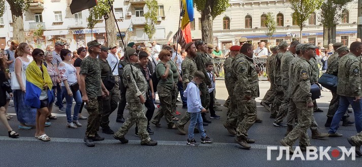 В центрі столиці, від парку імені Тараса Шевченка до вулиці Хрещатик проходить альтернативна хода до Дня Незалежності: Марш ветеранів. Після цього частина учасників підуть на Михайлівську площу на молебен за Україну, передає кореспондент «Главкома».