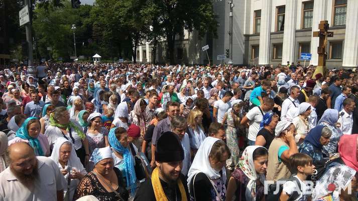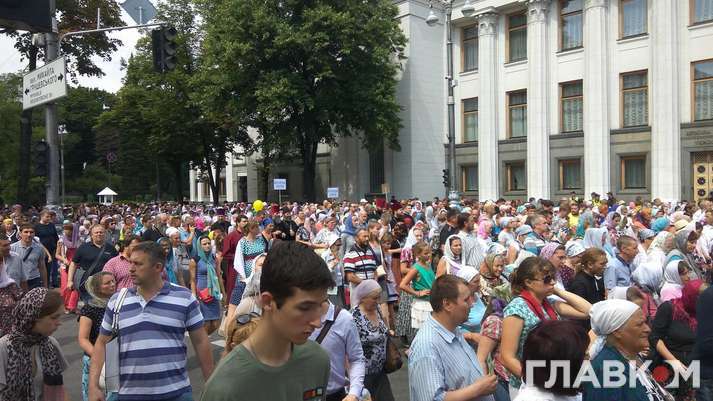 Хресний хід, який у столиці 27 липня проводить УПЦ Московського патріархату, з Володимирської гірки, де відбувся молебень, дістався Верховної Ради.