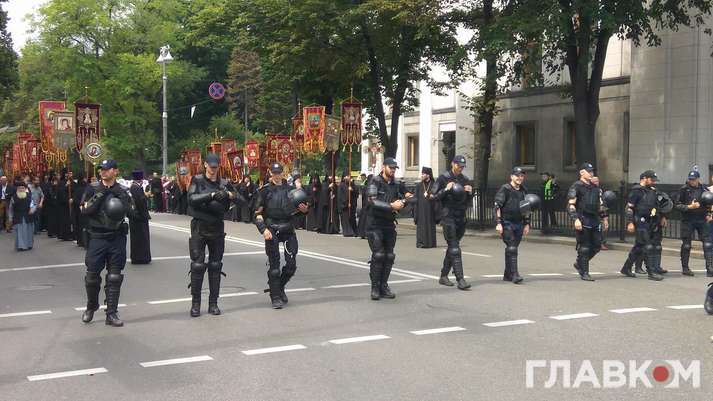 Як повідомляє кореспондент «Главкома», наразі учасники ходу рухаються у бік Києво-Печерської лаври. Вірян і священників охороняють сотні поліцейських.