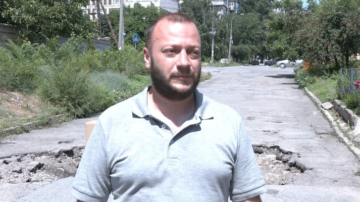 Голова ОСББ «Річковик» на вулиці Дніпровській, 4-а Сергій Гудков розповів, що під час дощів вода з проспекту Соборного стікає цією дорогою до багатоповерхівки. Через це утворилася яма.