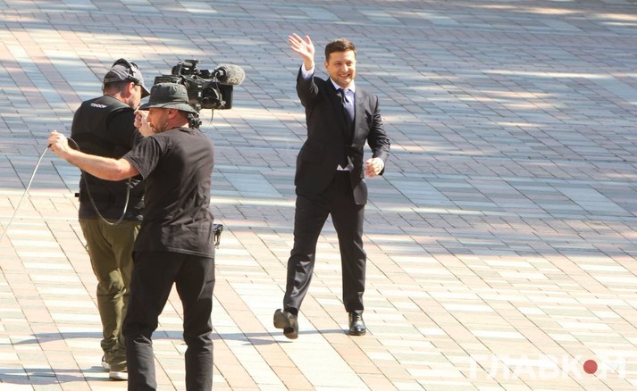 Проходячи площу перед Верховною Радою Зеленський розцілував своїх колег з «95 кварталу». Зокрема, актора Євгена Кошового він поцілував у лоба, підстрибнувши, повідомляє кореспондент «Главкома».