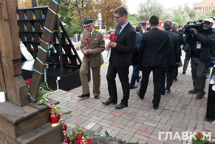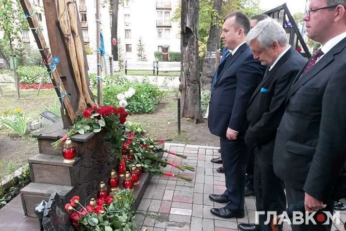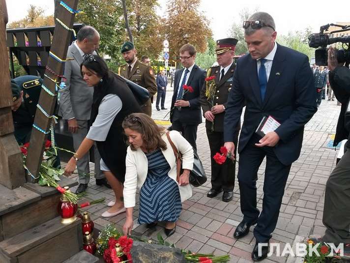 Представники іноземних делегацій поклали квіти до встановленого на алеї Небесної Сотні хреста та вшанували пам'ять полеглих під час Революції Гідності у 2014-му році. Про це повідомляє кореспондент «Главкому» з місця події.