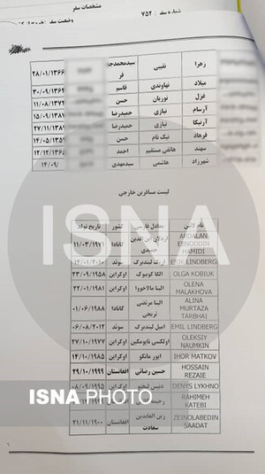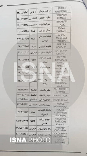 Іранське агентство новин ISNA опублікувало імена українців, які загинули внаслідок катастрофи літака «Міжнародних авіаліній України» Boeing 737 в Тегерані.
