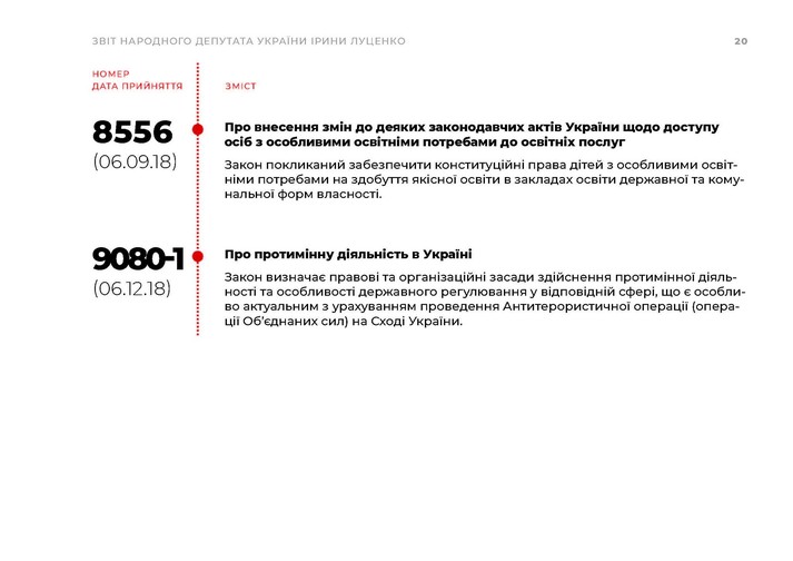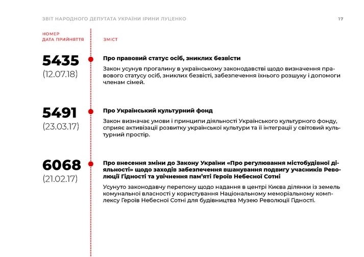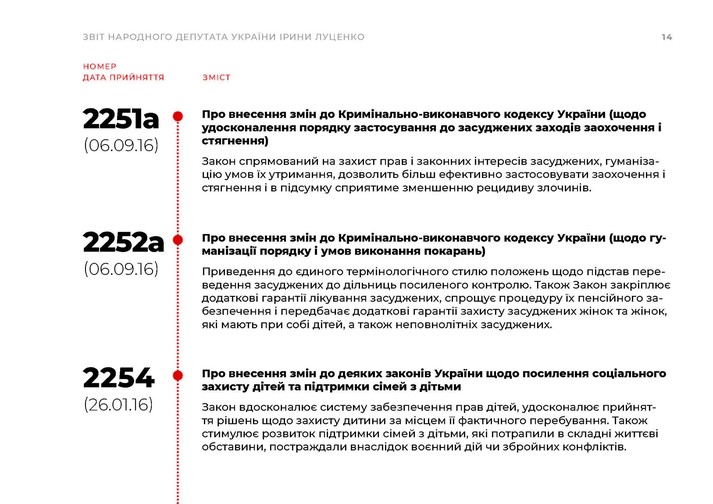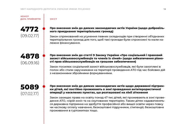 Луценко опублікувала таблицю з перпеліком своїх досягнень на посаді народного депутата та подякувала своїм колегам і однодумцям за співпрацю.