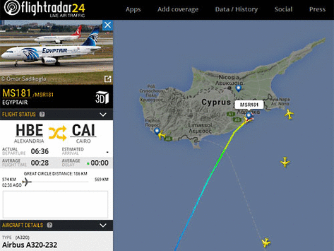 За даними єгипетських радарів, наданих Комісії збройними силами Єгипту, «літак перед катастрофою звернув з курсу наліво, а потім повністю розвернувся в повітрі».