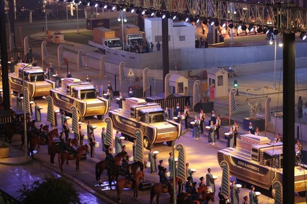 Загалом кортеж, який супроводжували 60 мотоциклів, 150 коней і музичний ансамбль, подолав п'ять кілометрів. Його маршрут пролягав вздовж головної водної артерії країни – Нілу.