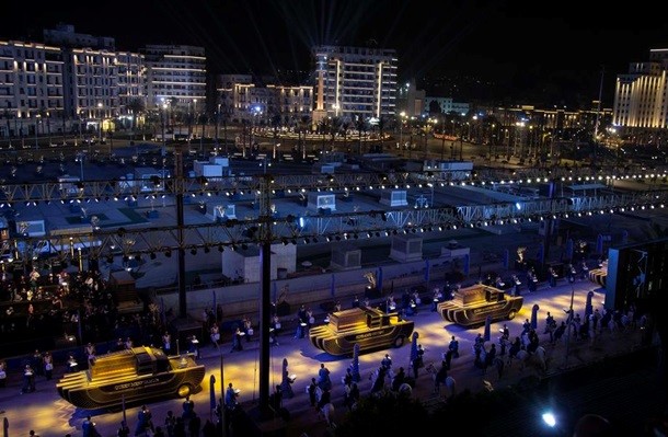 Довгу процесію із саркофагів, стилізованих під стародавні човни, очолювали вершники-стражники в одязі древніх єгиптян.