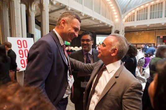 Також відбулася зустріч Кличка з мером Нью-Йорка Біллом де Блазіо. Віталій Кличко подякував за організацію такої конференції та особливу увагу та допомогу Києву. І запросив мера Нью-Йорка відвідати українську столицю.