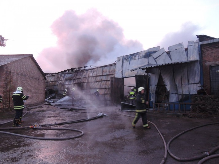 Пожежа в одноповерховому складському приміщенні на вул. Новоконстянтинівській, 22/15. Вогнеборці, які прибули за викликом ліквідували пожежу площею 450 кв.м. о 19:37, а о 20:15.
