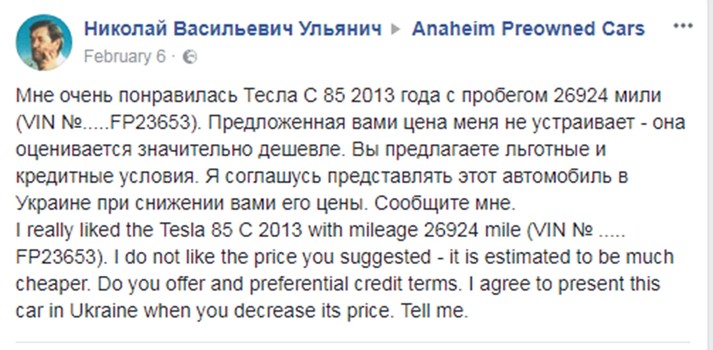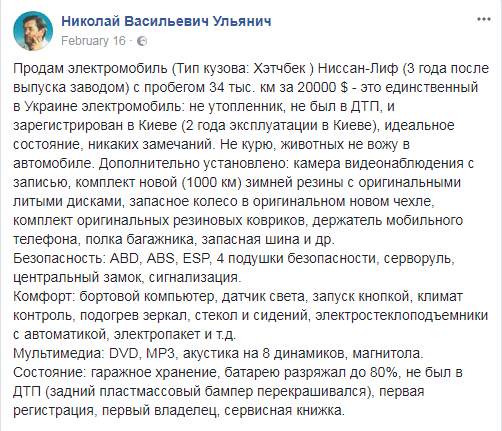 Ульянич також розповів, що купив електромобіль для того, щоб не турбувати бджіл на пасіці звуком мотора. До Tesla у пасічника був бюджетний електромобіль Nissan Leaf, який він продав цього року.