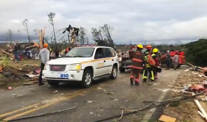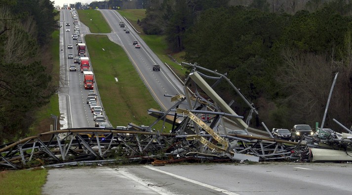 Нагадаємо, у неділю ввечері на штат Алабама обрушились кілька потужних торнадо. Найбільше постраждав округ Лі. Стихія руйнувала будинки, ламала лінії електропередачі і з корінням виривали дерева.