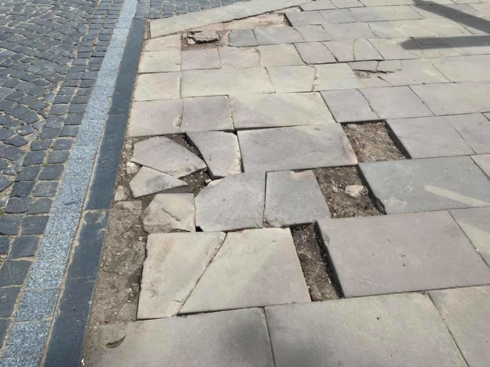 Режисер додав, що для вирішення цієї проблеми він закупив необхідні матеріали, викликав професійних майстрів та, за погодженням із міськради почав перекладати й замінювати тротуарну плитку.