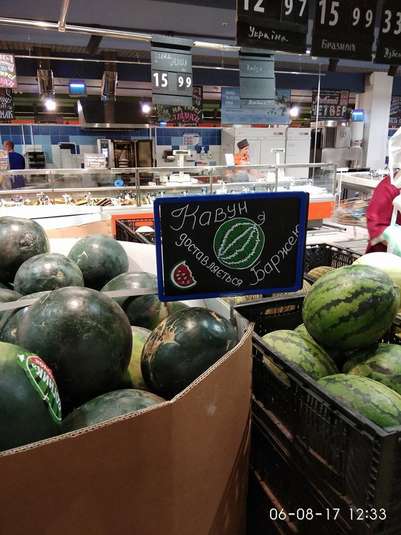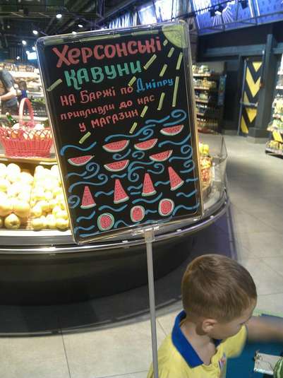 Кавуни з ланів Херсонщини, які вирушили до Києва на баржі по Дніпру на початку цього тижня, дісталися торгівельних мереж столиці. Про це свідчать пости жителів столиці у соціальних мережах, які розміщують фотографії з херсонськими кавунами.