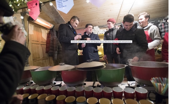«Ми з Віталієм спробували різдвяний глінтвейн і навіть випробували себе по той бік прилавка в ролі продавців», - пише Гройсман.