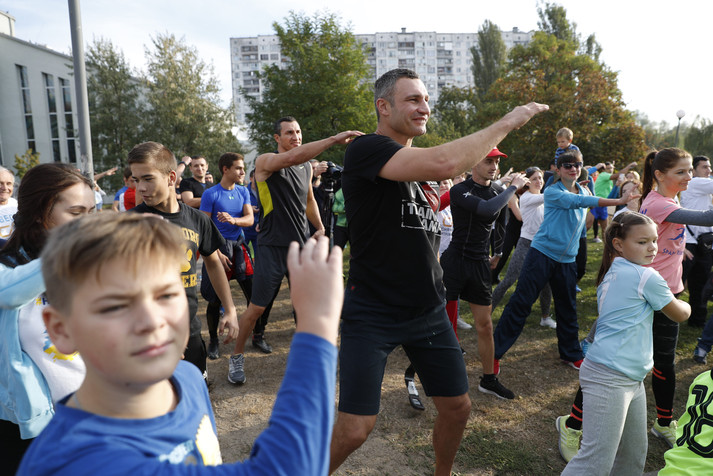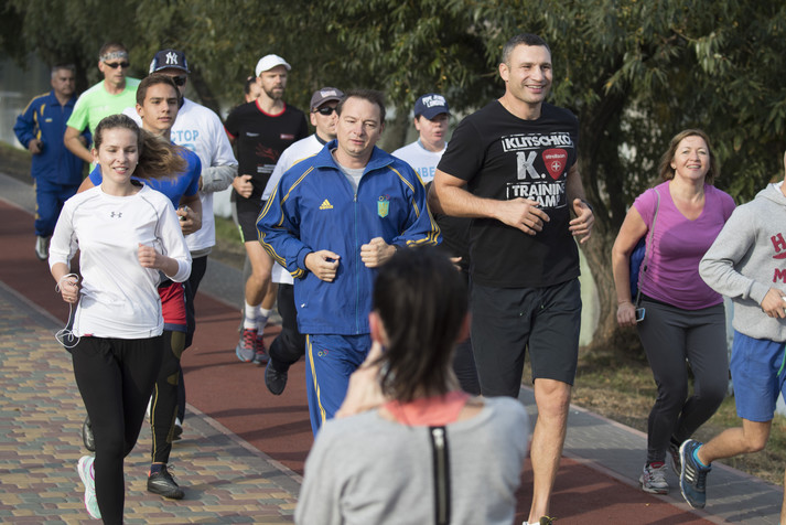 Мер Києва Віталій Кличко разом з братом Володимиром взяли участь у ранковій розминці і протестували найбільшу в Україні нову бігову доріжку, яку облаштували навколо озера Тельбін. Про це повідомляє прес-служба мера.