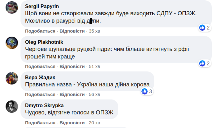 «Чергове щупальце російської гідри. Чим більше витягнуть із Росії грошей, тим краще», «Правильна назва: Україна – наша дійна корова», «Без державного корита ніяк», «Мало їм ДНР», – пишуть коментатори.