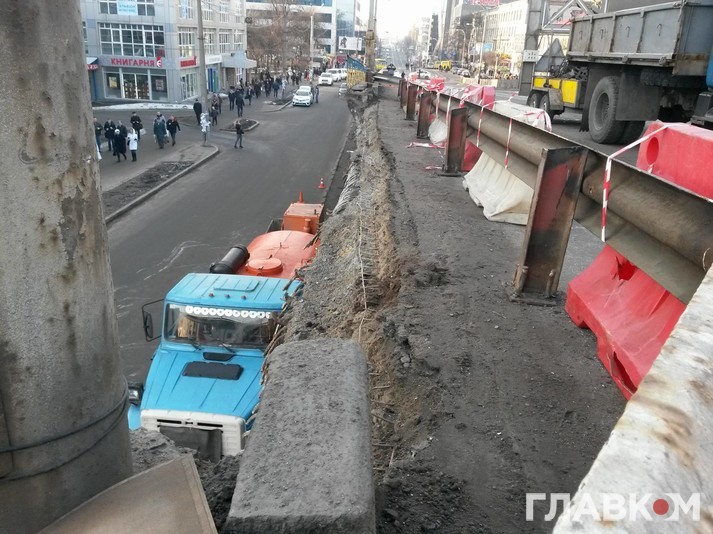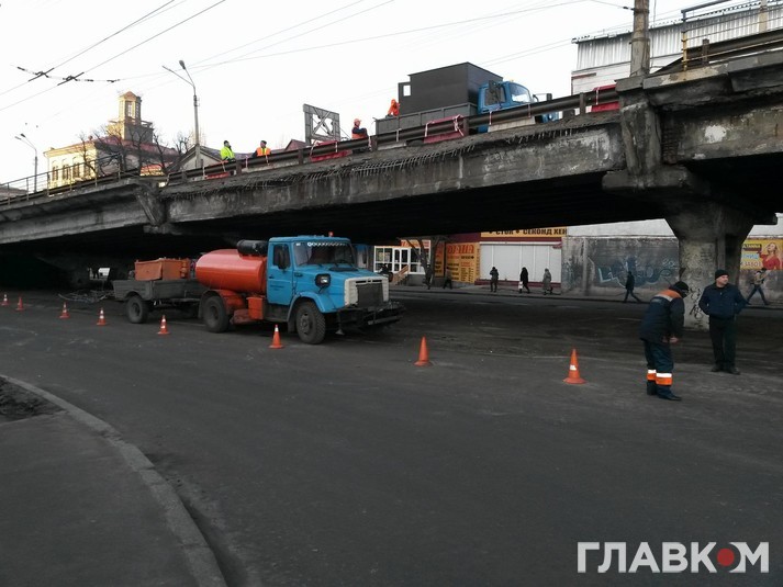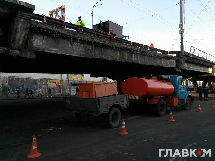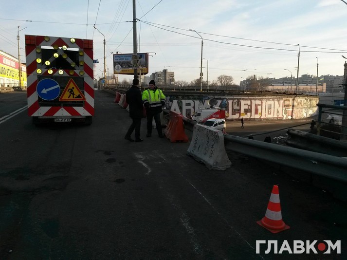 На Шулявському шляхопроводі демонтували зовнішню конструкцію пішохідної частини, яка обвалилася.