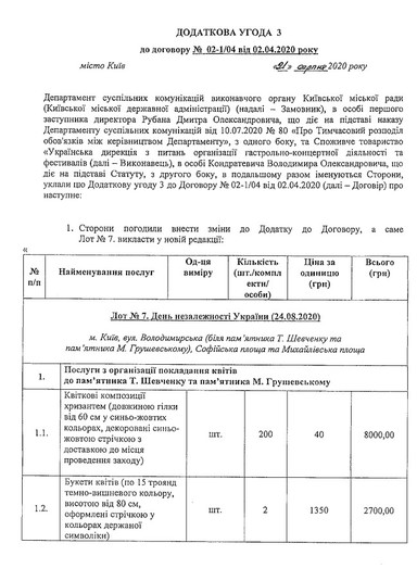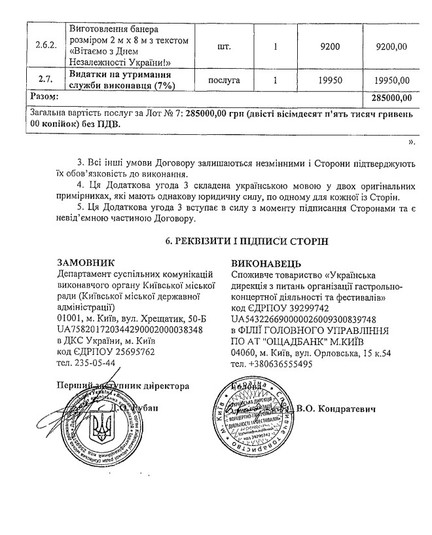 Крім того, Київрада заплатила ще 44,6 тисяч гривень за покладання квітів до пам’ятників Тараса Шевченка та Михайла Грушевського. Загалом місцевий бюджет виділив 285 тисяч гривень на День Незалежності.