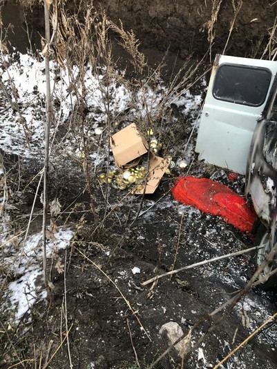 Українські прикордонники виявили на кордоні з Росією обгорілий мікроавтобус, який потрапив у рів проти контрабанди. У ньому знайшли залишки червоної та чорної ікри.
