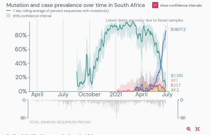 «Південна Африка в даний момент проходить третю хвилю смертності. Населення 60 млн чоловік. У день до 500 офіційних смертей від коронавірусу. І там вже не південноафриканський варіант, а індійська Дельта. Так, це дивно, Дельта витіснила місцевий варіант», – написав Євгеній Істребін.
