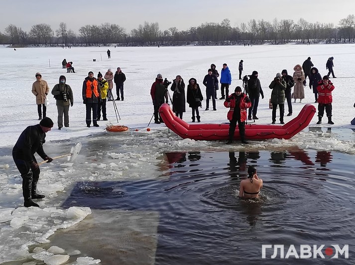 Цьогоріч через пандемію коронавірусу людей біля Дніпра було не багато. А величезний холод стримував українців від занурення в ополонку.