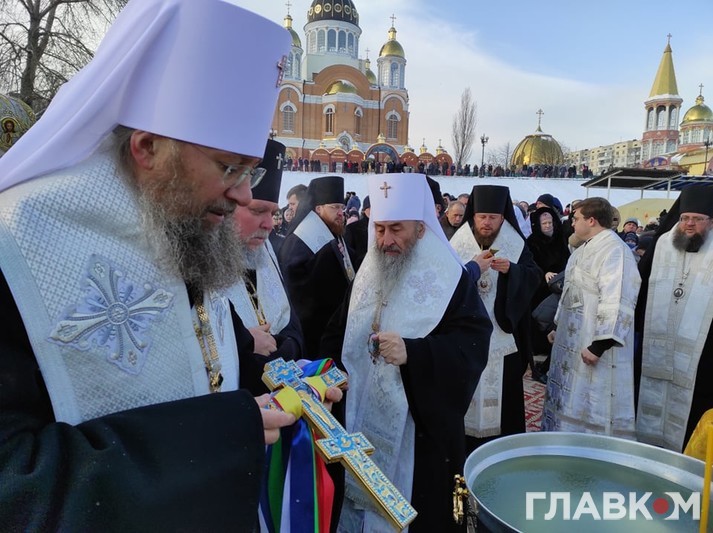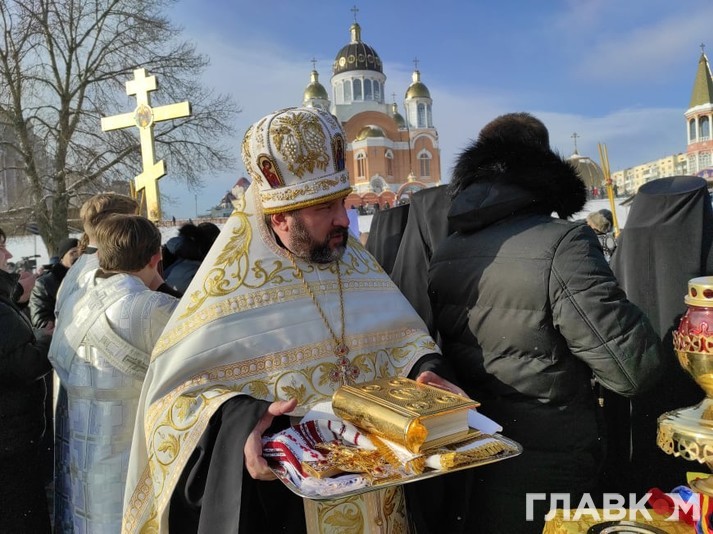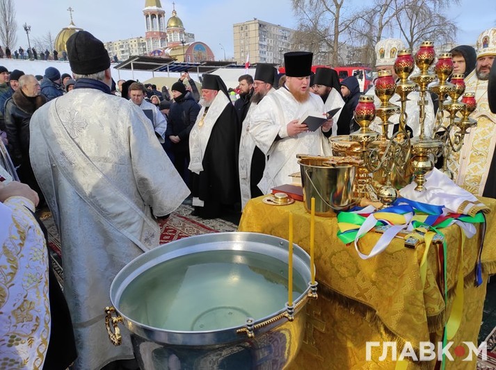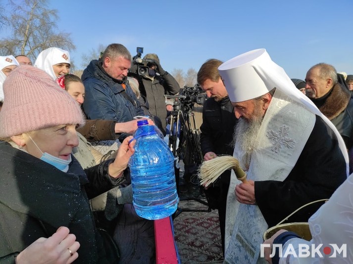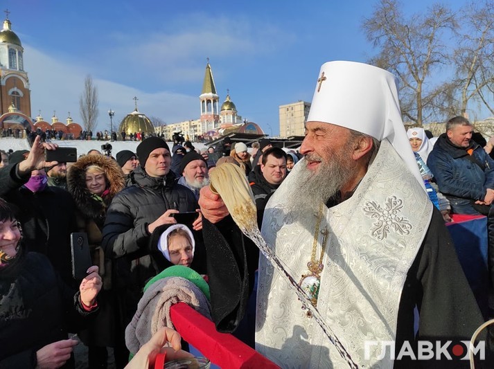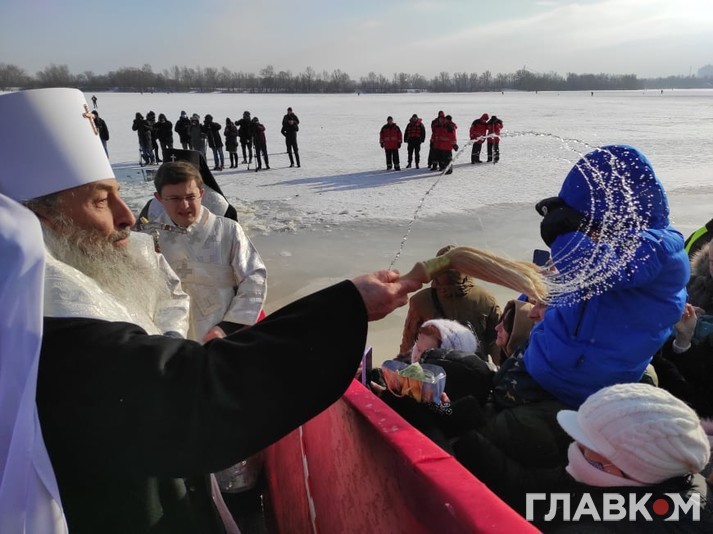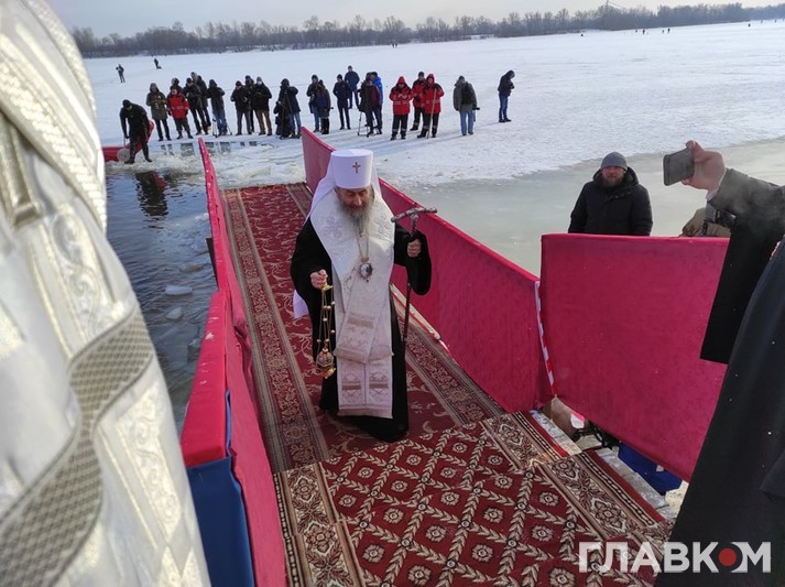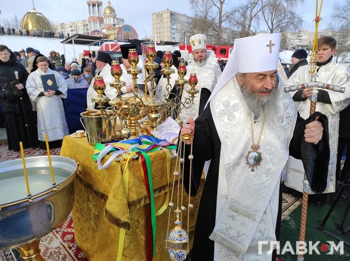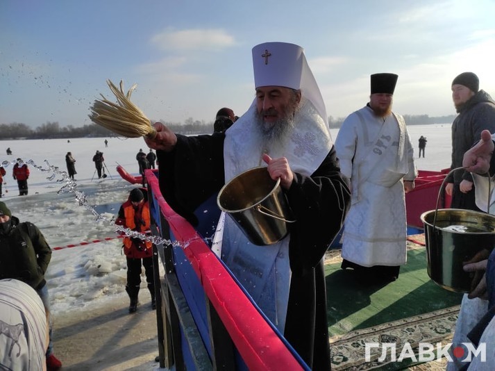 Митрополит Онуфрій у вівторок на честь Хрещення Господнього освятив воду в Дніпрі. Урочисте освячення відбулося в Оболонському районі Києва, біля Свято-Покровського собору, повідомляє кореспондент «Главкому».