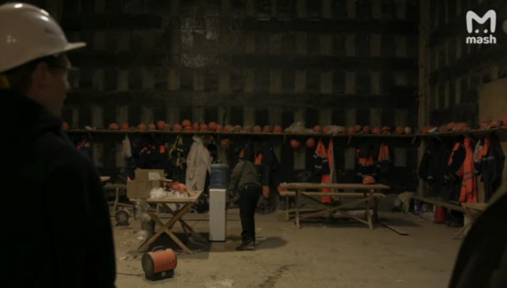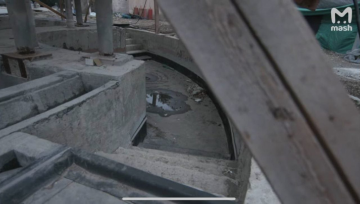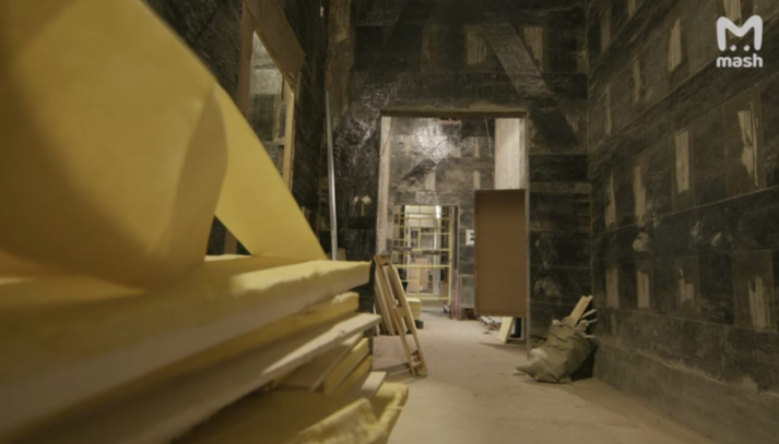 Також на відео видно кадри з так званої кальянної – це приміщення зараз виконує функцію роздягальні для будівельників.