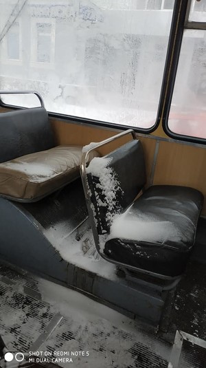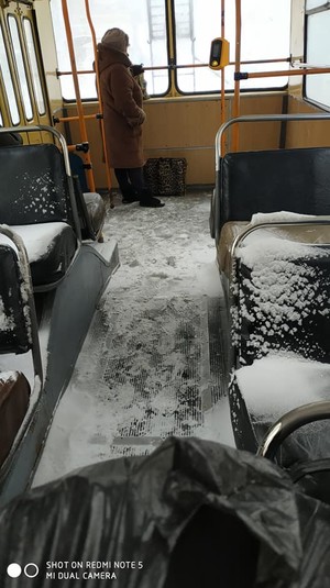 Кучугури снігу в салоні. В Житомирі ходить незвичний тролейбус (фото)