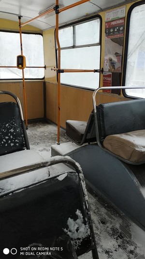 До мережі Facebook потрапили фото житомирського засніженого міського транспорту. Сидіння вкриті снігом та припорошений салон тролейбуса з єдиною пасажиркою на задній площадці викликали обурення в соцмережі. За інформацією очевидців, «захурделило» в салоні тролейбуса № 1.