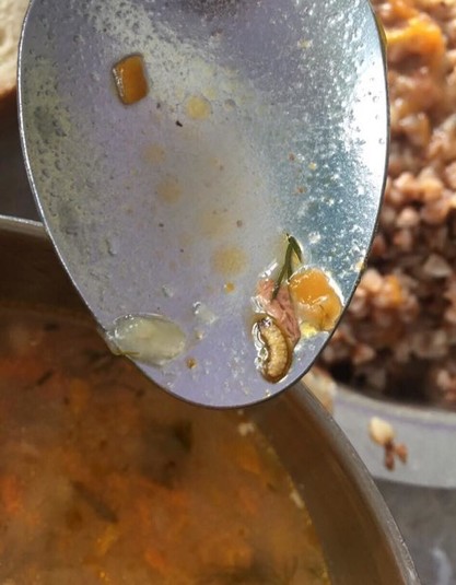 «Розумію, що після наступних фото буде шалений шквал критики, але з цим неможливо миритися. Військові прокурори Харківського гарнізону, у зв'язку із розслідуванням розкрадань в Харківському національному [університеті] Повітряних сил, йшли не на склади боєприпасів (куди вже є заборона заходити з ГШ МОУ) - а в курсантську їдальню! Виявляється, що так харчуються майбутні військові льотчики…», - так прокоментував фото із комахами військовий прокурор на своїй сторінці у Facebook.
