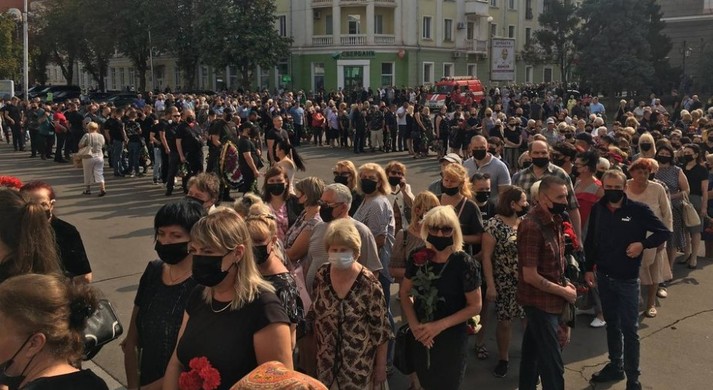 За попередніми підрахунками, охочих попрощатися з градоначальником – близько 20 тисяч. Усім, хто прийшов попрощатися з міським головою видавали медичні маски чорного кольору.