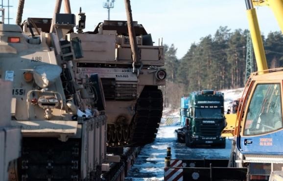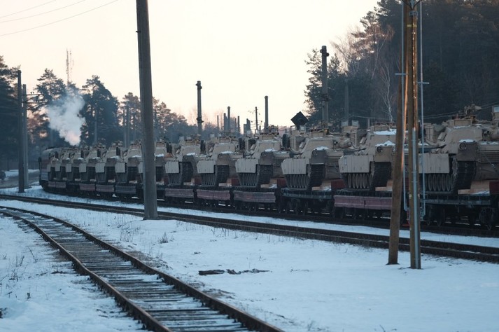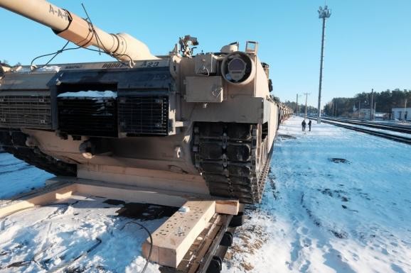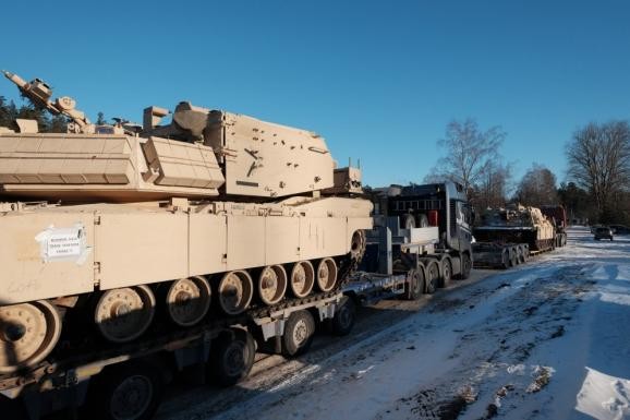 До Латвії прибула перша партія американської військової техніки: танки M1 Abrams і бойові машини піхоти Bradley.