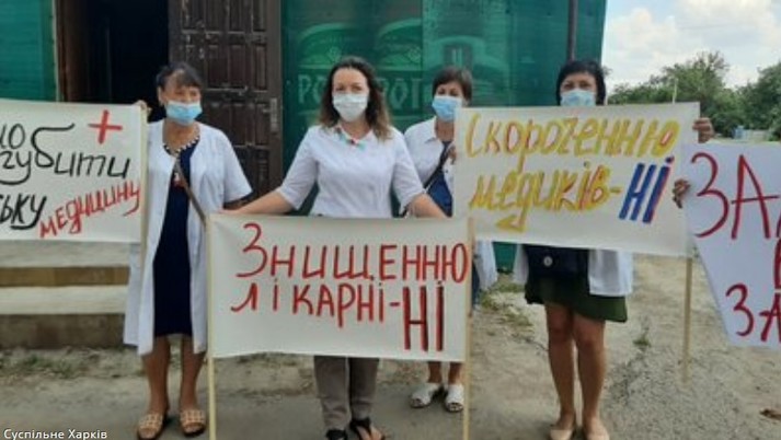 Трасу «Київ-Довжанський» на території Харківської області перекрили медики Валківської районної лікарні, що вимагають виплати заборгованості із заробітної плати. Як повідомляє кореспондент «Суспільного», з протестом у Валках виступило близько 50 людей, які принесли плакати «Врятуємо Валківську лікарню», «Знищенню лікарні – ні!», «Скороченню медиків – ні!», «Зарплата – без затримки», «Гідну зарплату медикам».