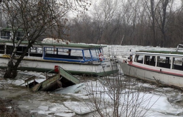 Льодохід, що рушив із Закарпаття в Угорщину по Тисі, розчавив кілька кораблів у районі Токаю.